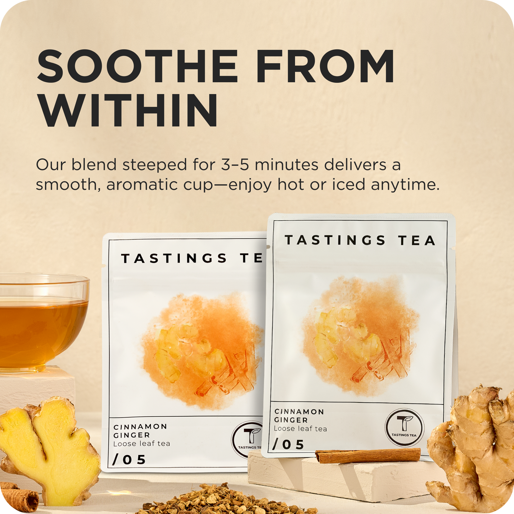 Premium Loose-Leaf Tea – This ginger root and cinnamon tea should be something you can enjoy in your own kitchen, at work, or when you’re on vacation which is why it comes in a high-quality loose-leaf form perfect for quick, easy steeping.