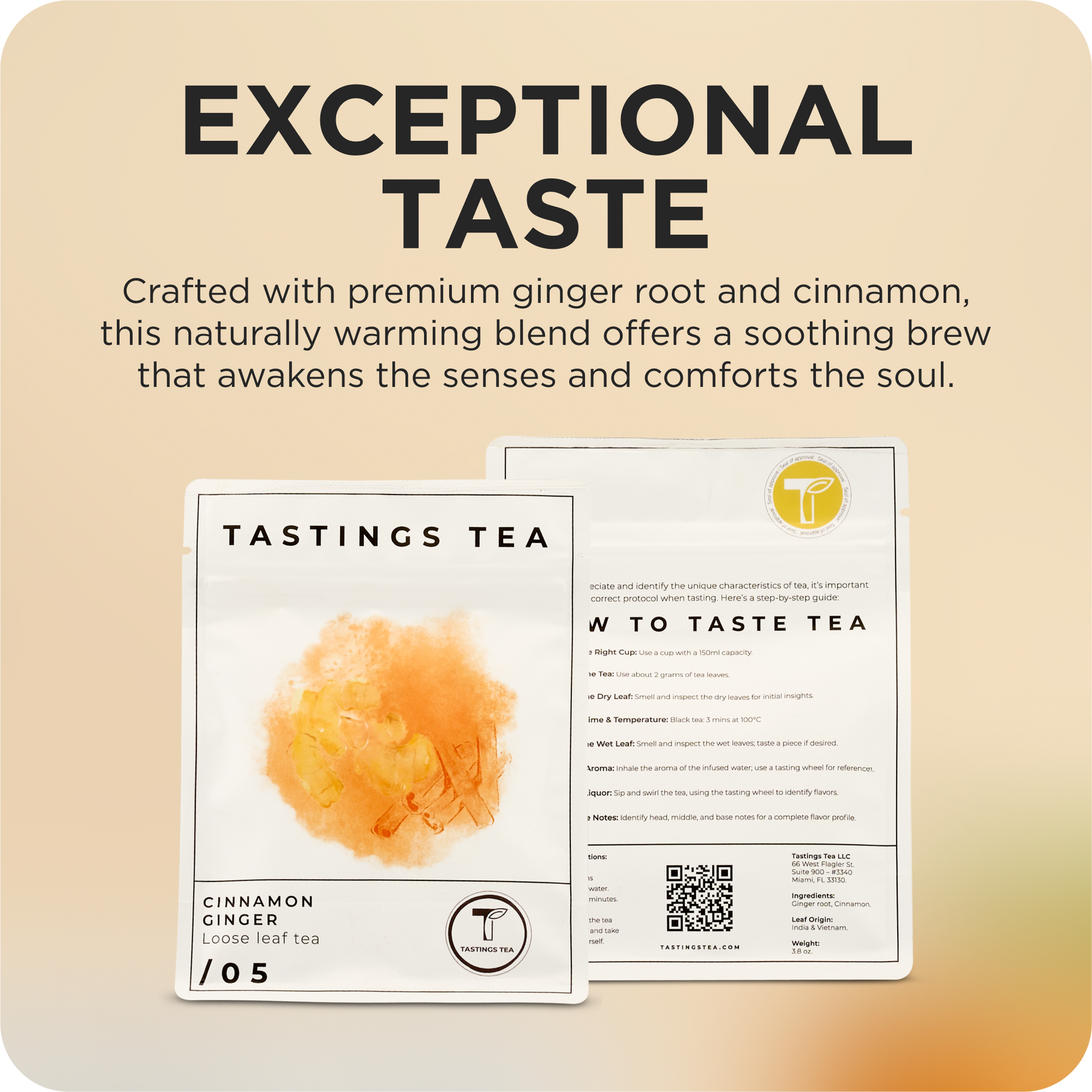Small, Fresh-Made Batches – Quality and freshness go hand in hand when it comes to Tastings Tea which is why our ginger cinnamon tea is freshly made by tea artisans in small batches so we can better ensure better taste and aroma in every order.