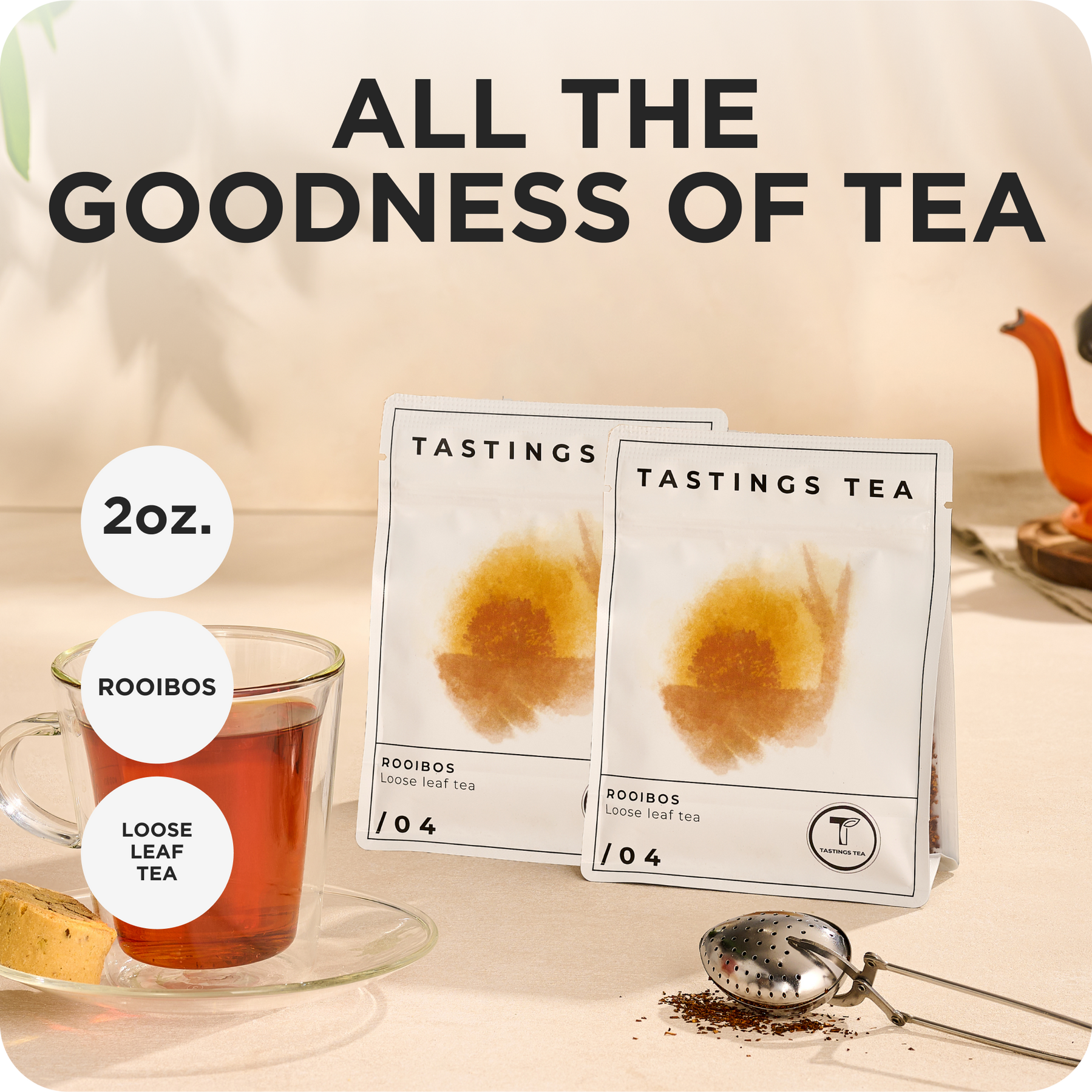 Quick, Easy-to-Steep Loose Leaf – This rooibos tea comes in a loose-leaf form that’s easy to enjoy in a pot or a single, so you can enjoy a freshly-made cup in just a few minutes when you’re at home, work, or on the go.